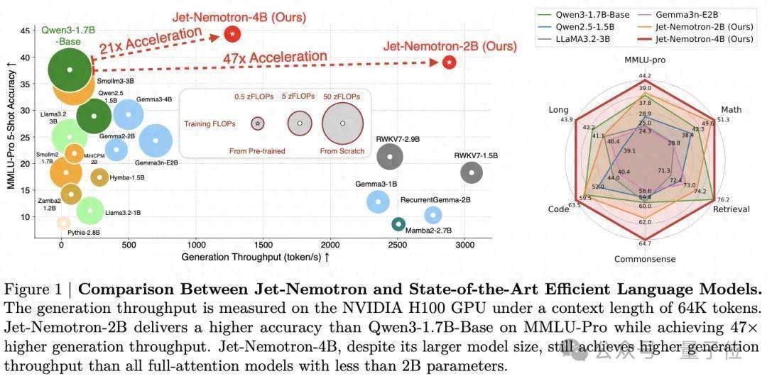 韩松团队推出了一款全新的基于后神经架构搜索的高效语言模型——Jet-Nemotron。