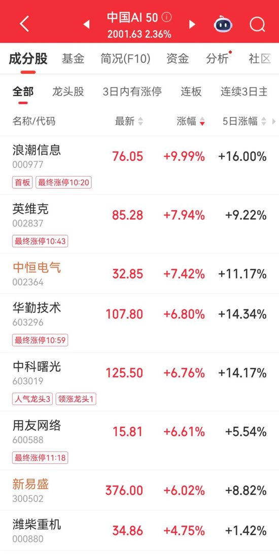 另一方面,多只科技龙头股股价上涨并创历史新高,包括宁德时代、沃尔核材、浪潮信息、中科曙光、海光信息等。